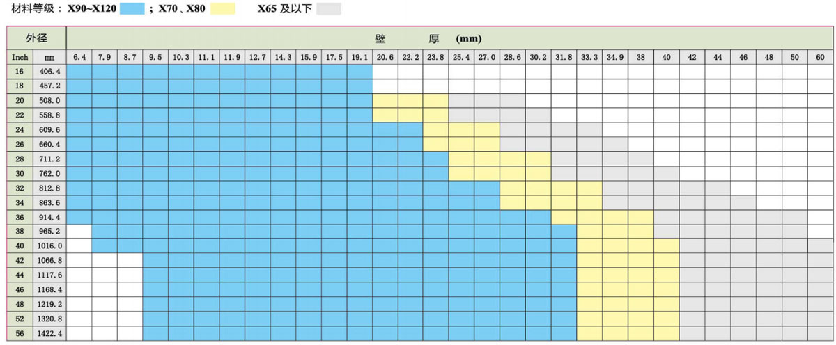 钢管直径: Ф406.4~Ф1422.4mm (16-56inch)